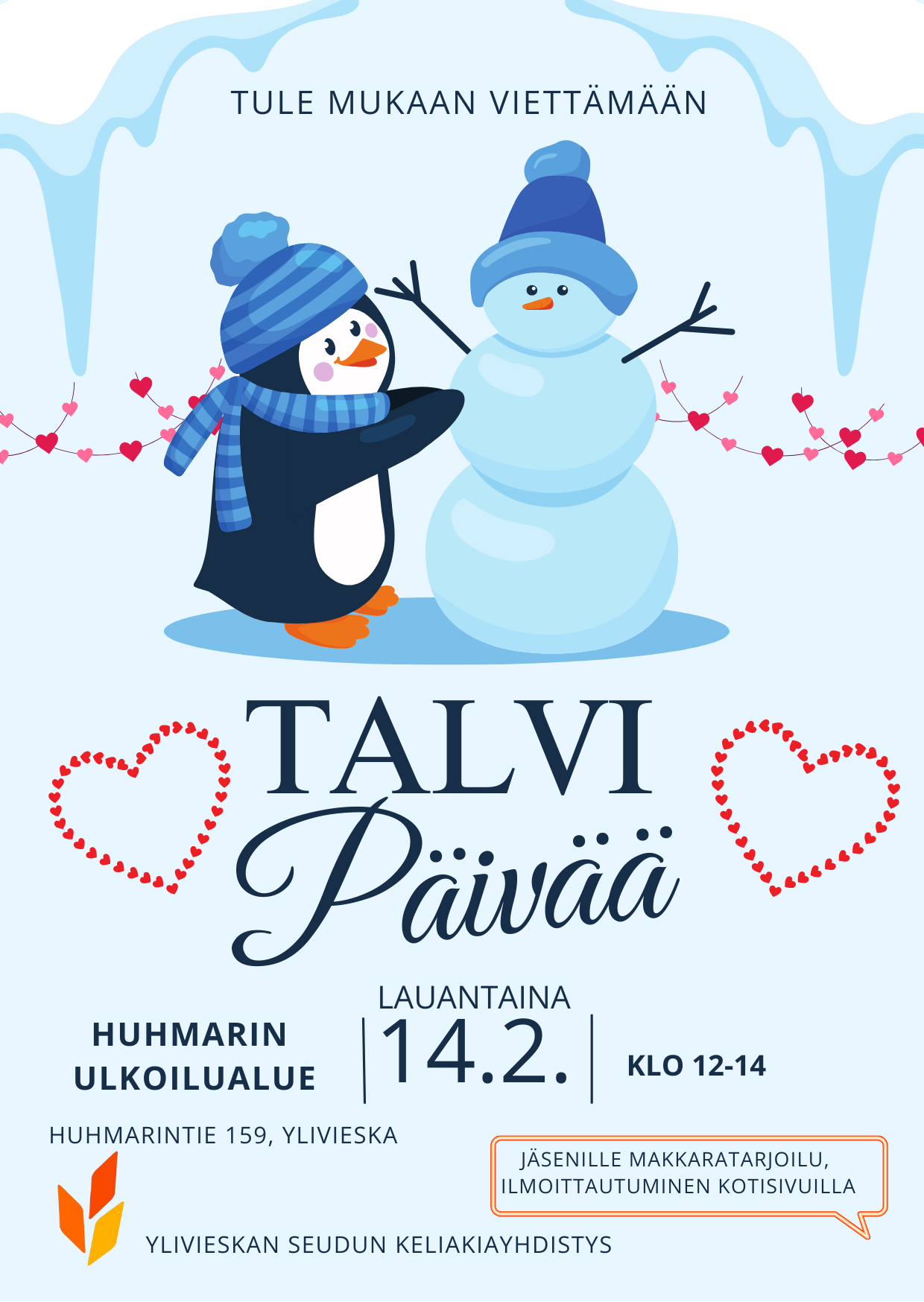 Kokoonnutaan viettämään talvipäivää yhdessä Huhmarille makkaranpaiston ja ulkoilun merkeissä. Huhmarilta löytyy hiihtoladut, kuntoportaat ja mäenlasku mahdollisuudet. Pidämme nuotiolla liekkejä yllä…